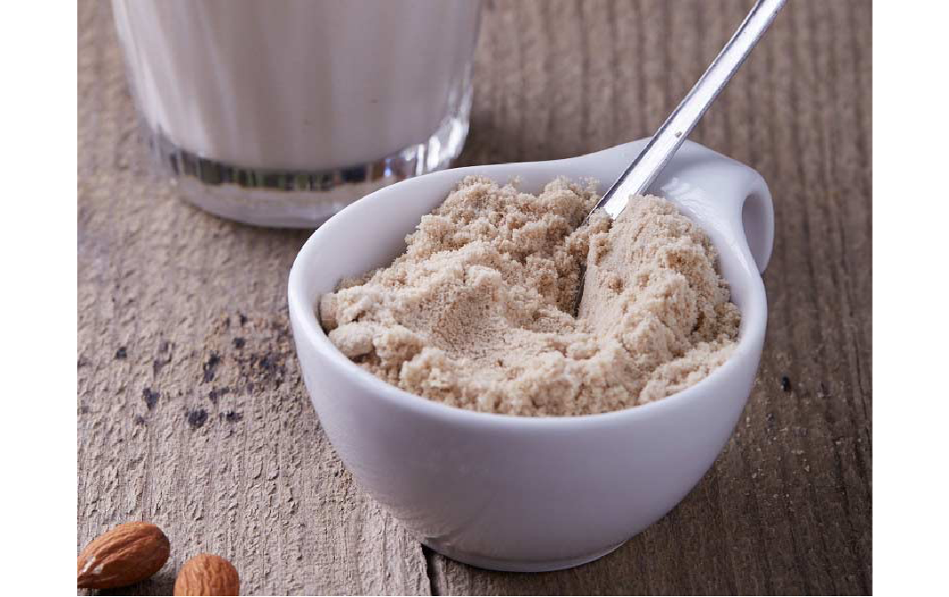 Almond milk powder is a blend of blanched and roasted almonds, used to make instant almond milk. The powder can be mixed with some other powdered ingredients(sugar, chopped dry dates, pistachios, saffron, dried grapes and cardamom) to enhance its flavour.