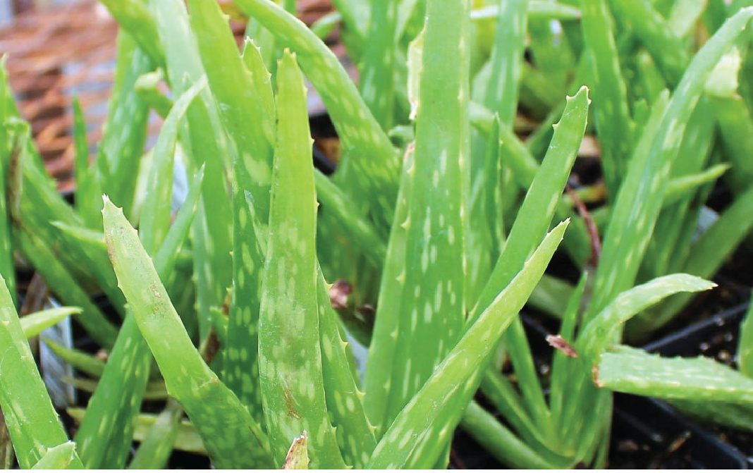 Aloe vera is a type of plant with thick pointed leaves and the gel found in the leaves is used to treat various conditions like skin rashes,cuts,burns,acne. It is a stemless or very short-stemmed juicy plant which grows around 60–100 cm in height and the offsets spread outwide. The leaves are thick and fleshy, and the color varies from green to gray-green with some varieties showing white flecks on the upper and lower portions of the stem surfaces. The margin of the aloe vera leaves is like saw-tooth and the flowers bloom during the summer. Aloe vera plant can be easily grown both, indoors and outdoors. It originated in Sudan and Arabian Peninsula. Aloe vera grows best in warm and dry climates and is widely found in India, Africa, and other arid zones. It is used in Indian and Southeast Asian cuisines.
