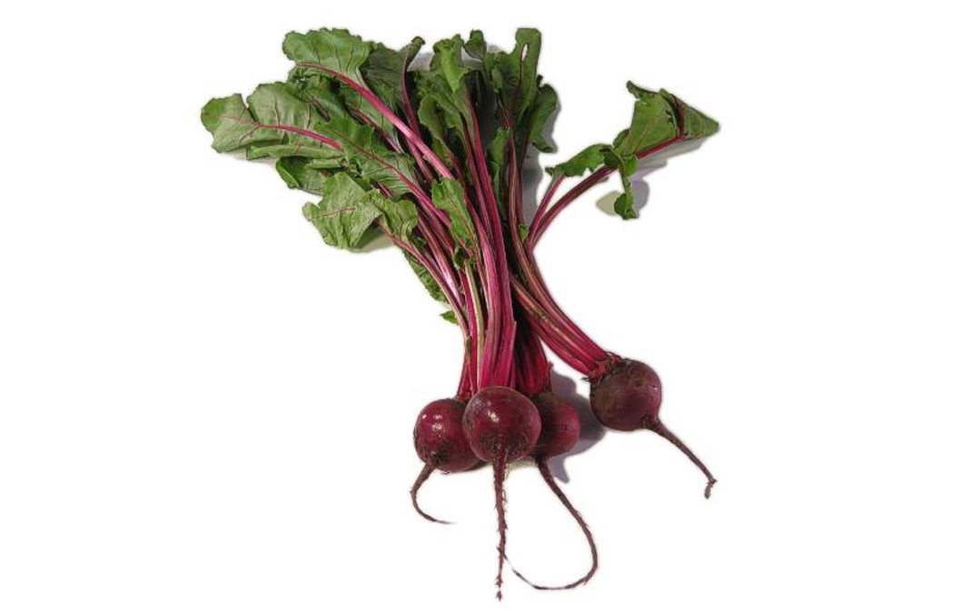 Baby red beets are small, round beets that have deep burgundy coloured skin. They have red and green leafy stems that also edible. They have a tender texture.