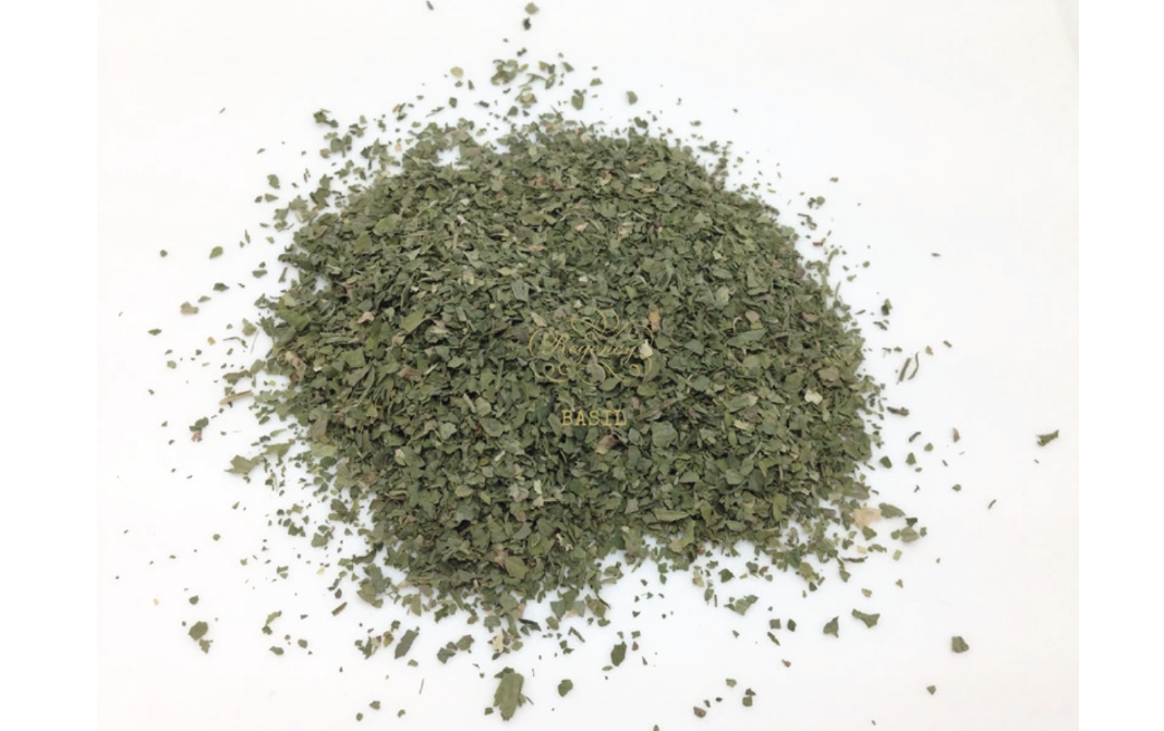 Basil Flakes are the dried form of basil leaves that are crushed to flakes. Basil is a culinary herb of the family Lamiaceae, native to India, Iran and tropical regions of Asia. It has rich green colored, ovate shaped leaves that may vary according to its variety. The leaves are dried either under the sun, in a microwave or in a food dehydrator. Once they are completely dried and turn crispy, they are crumbled to flakes. The flakes are dull green to brown in color and have brittle, crumbly texture. They can be used as a seasoning herb for the dishes.