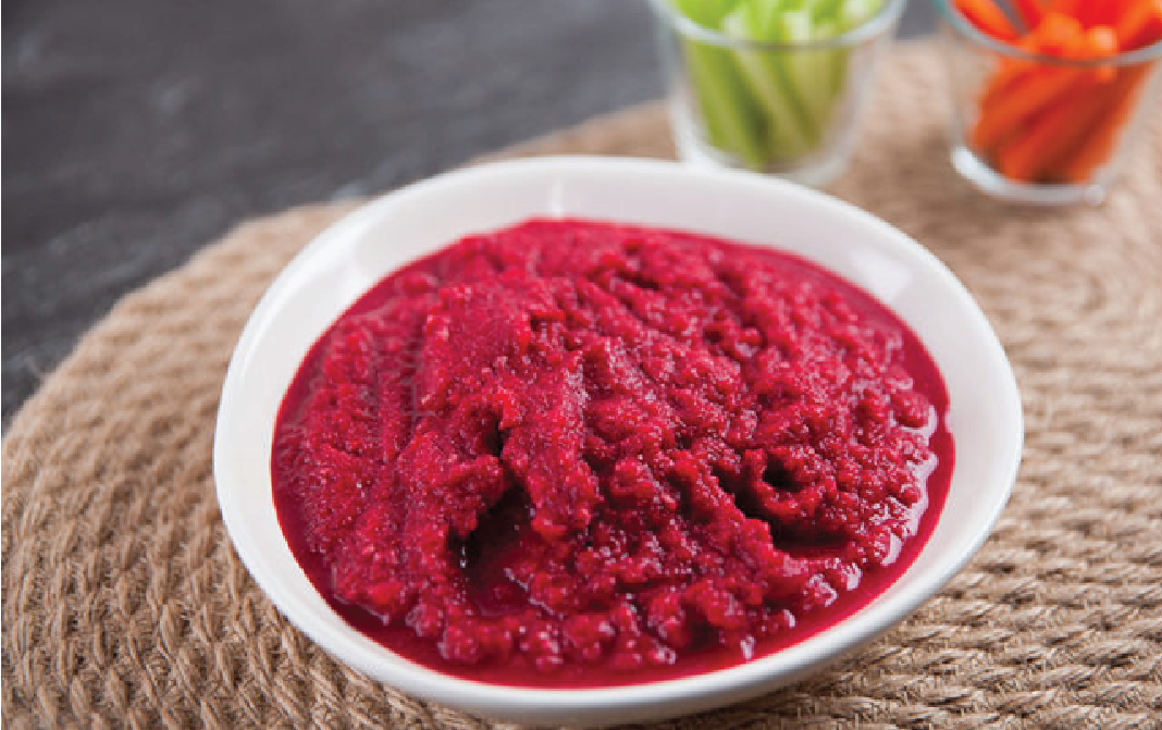 Beetroot paste are is a thick, pinkish red colored paste. It is prepared by blending boiled beetroots with strained yogurt, mayonnaise, garlic and some salt. It is part of American cuisine.