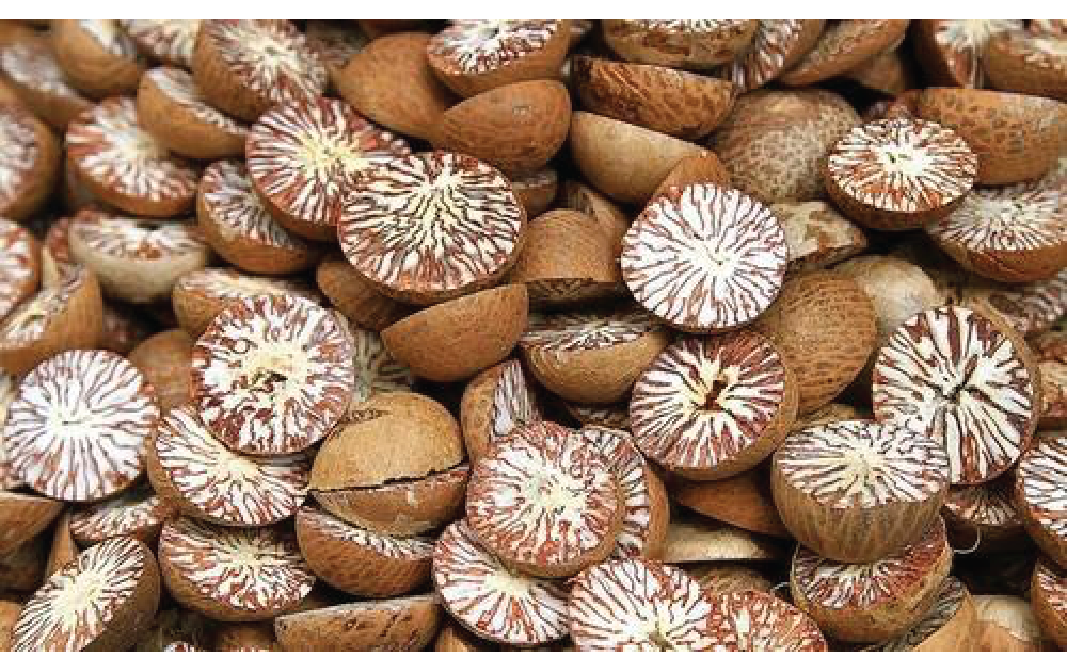 Betel nut is a seed of the fruit of plant areca palm. It is also known as areca nut. It is cultivated in the regions tropical India, Bangladesh, Japan, Sri Lanka, south China, the East Indies, the Philippines, and parts of Africa. India is the largest consumer of betel nut. The areca nut-producing states in India are Karnataka, Kerala, Assam, Tamil Nadu, Meghalaya, and West Bengal. The outer husk of betel nut is coarse and matures from green to yellow-orange and may also contain patches of red. Within this, hard light brown nut called dried endosperm is present. Betel nuts have a chewy texture and a spice-like flavor similar to nutmeg and cinnamon. It stands at the fourth place as one of the most popular psychoactive substances in the world after nicotine, alcohol, and caffeine. The best season for the cultivation of betel nut is between June to December. The various varieties of betel nut that are cultivated in India are Subamangala, Mangala, Sumangala, Mohitnagar, Hirerhalli dwarf and Samruthi.