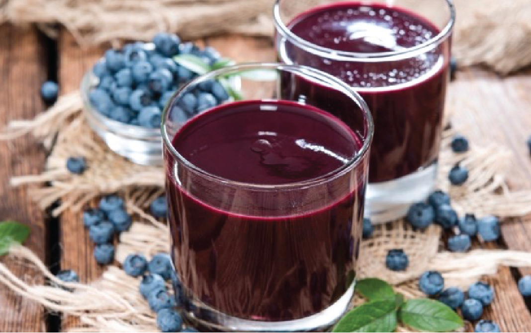 Blueberry juice is a beverage which is made from blueberries. It is made by blending or pressing blueberries.