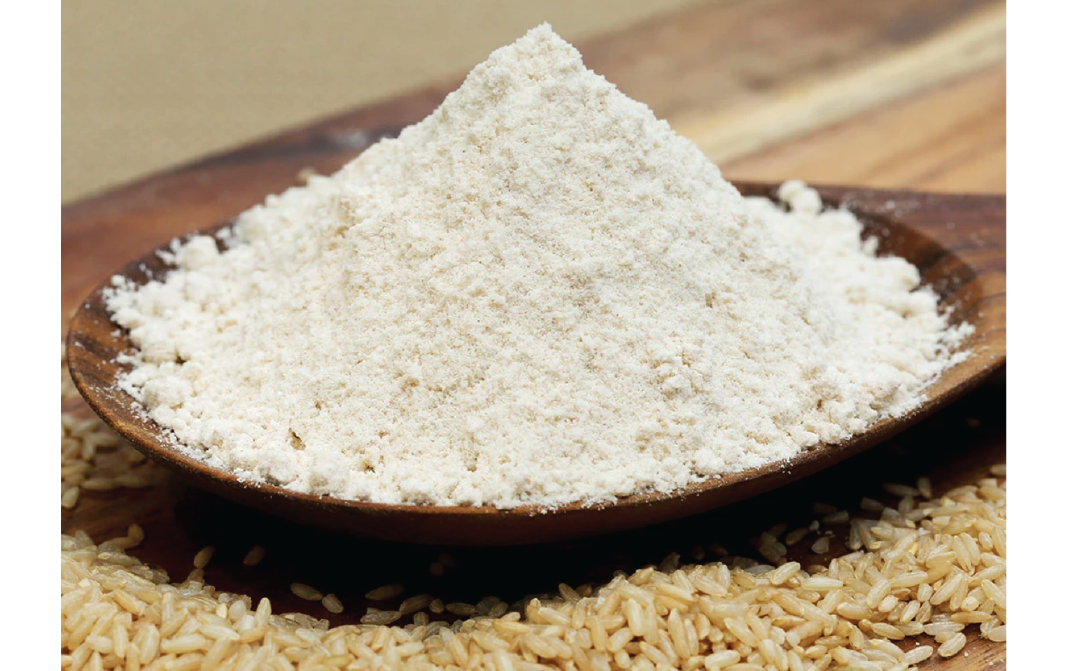 Brown rice flour is a gluten-free flour obtained by grinding brown rice grains to a fine powder. It has creamy almond color with smooth texture.