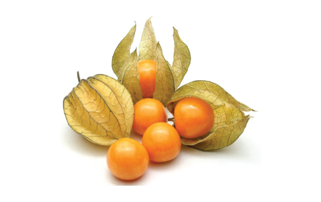 Cape gooseberry is a fruit of the potato family. It is a native of America.It is wrapped in a thin, straw colored, parchment like husk. Their inner juicy pulp contains very small yellowish seeds which are edible and have a crunchy texture. It is used in fruit salads, cocktails and also in desserts.