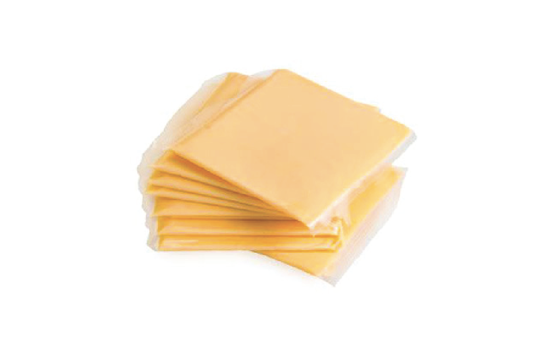 Cheese slices are individually packed thin cheese slices prepared from processed cheese, and solidifies only between the polyethylene wrappers. Each slice is an even square and is often called cheese singles.