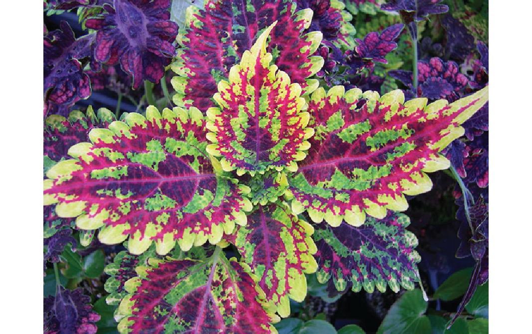 Coleus is an attractive, tropical perennial plant of the mint family that originated in the lower elevations of India. It is cultivated for its green and purple bright-colored or variegated leaves. It is currently grown around the world as an ornamental plant.