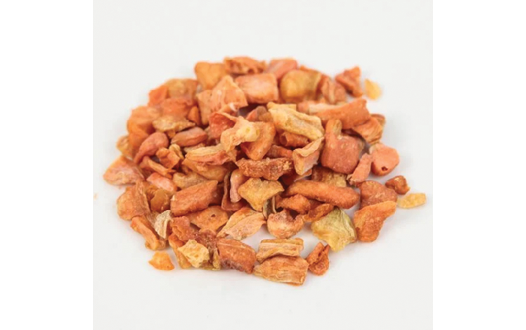 Dehydrated carrots are dried carrots having approximately 7% moisture in them. They are bright orange in color and taste like fresh carrots.