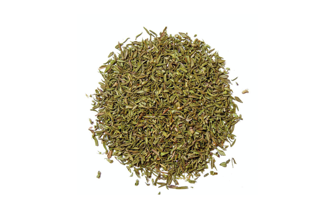 Dried thyme is the air-dried leaves of thyme which is a member of the aromatic perennial evergreen herbs in the mint family, Lamiaceae. It turns greyish-green in color when dried. The leaves are dried and chopped to flakes. It is native to the southern Mediterranean region, Asia and North Africa.