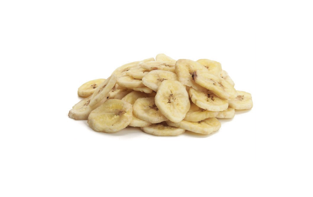 Freeze Dried Bananas are produced in a process where moisture is removed from fresh bananas using a very low temperature and a vacuum which leaves only about 2 percent of moisture in it. The final product has its weight reduced by over 70 percent, while the volume stays the same. During this process, the fresh taste, natural color, and texture of bananas remain the same.
