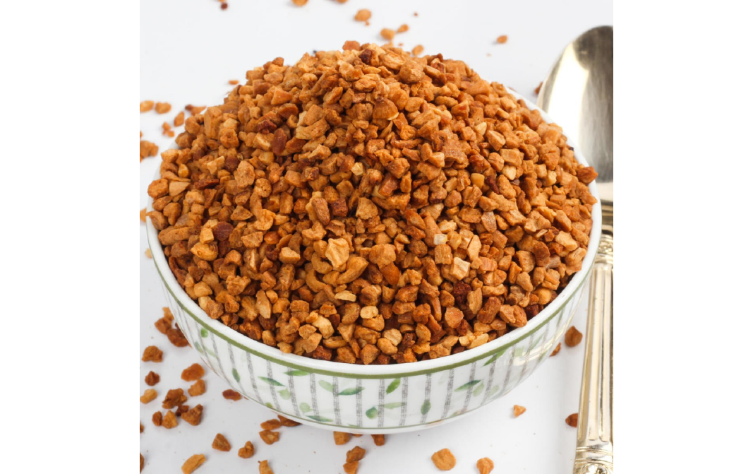 Garlic bits are garlic cloves peeled and chopped into little bits. They are often cooked in oil in a pan placed on medium-low heat, until golden brown. These garlic granules can be used to add pungent taste and aroma to a variety of dishes such as rice, noodles, fish and meat dishes.