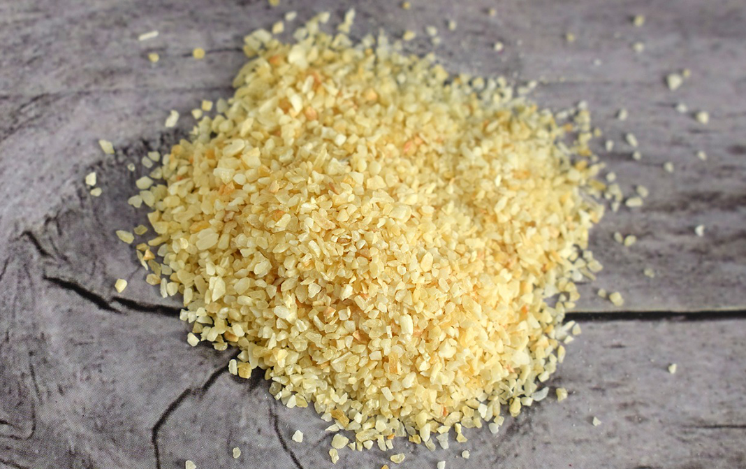 Garlic granules are obtained from dehydrated garlic and are ground into granules. Garlic granules has a thick coarse flour like texture.