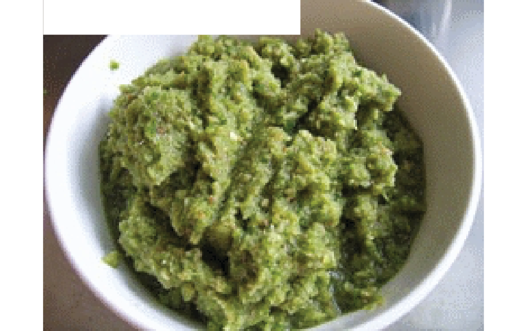 Ginger-green chilli paste is a smooth paste prepared by blending equal quantities of peeled and chopped ginger and chopped green chillies in a food blender, along with some lemon juice/oil and salt to taste. It can be used for flavouring savoury dishes.