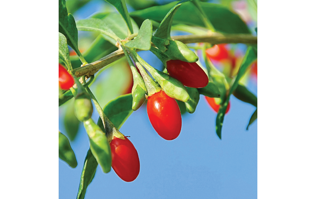Goji berries are red colored berry fruit that belongs to either of the two species Lycium barbarum or Lycium chinense. It belongs to the nightshade family, Solanaceae and is native to Asia.