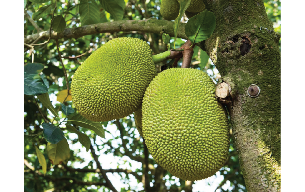 Jackfruit happens to be both the name of the fruit and the tree it grows on. It grows on both the branches and trunks of trees. When fully matured, they measure up to 80 cm long and 50 cm wide and weighs somewhere from 10 to 50 pounds. The rind of jackfruit changes colour from bright green to dull yellow when it ripens and might also develop dark patches. The inner part of the fruit just beneath the rind is the bright yellow bulbs that are said to be the edible portion of the jackfruit. While the young jackfruits have a crisp, crunchy texture, whereas the more mature ones might be firm or much softer, almost custard-like, depending on the variety. The seeds are an inch in size covered by a thin white membrane that is usually removed at the time of roasting. The aroma of the mature jackfruit is regarded as quite unpleasant, similar to an overripe one. While the younger fruits have a sweeter aroma. And as the fruit matures, the bulbs turn darker orange-yellow and the taste becomes sweeter. Jackfruit belongs to the mulberry family and is said to be the largest tree fruit in the world. In spite of being a native to the Indian subcontinent, the jackfruit is not consumed as it is in other areas of southwest Asia and Indonesia. They must have been originated in a mountainous region of the western ghats. They usually grow in a hot humid environment and are intolerant of drought and freeze. It is available all around the year.