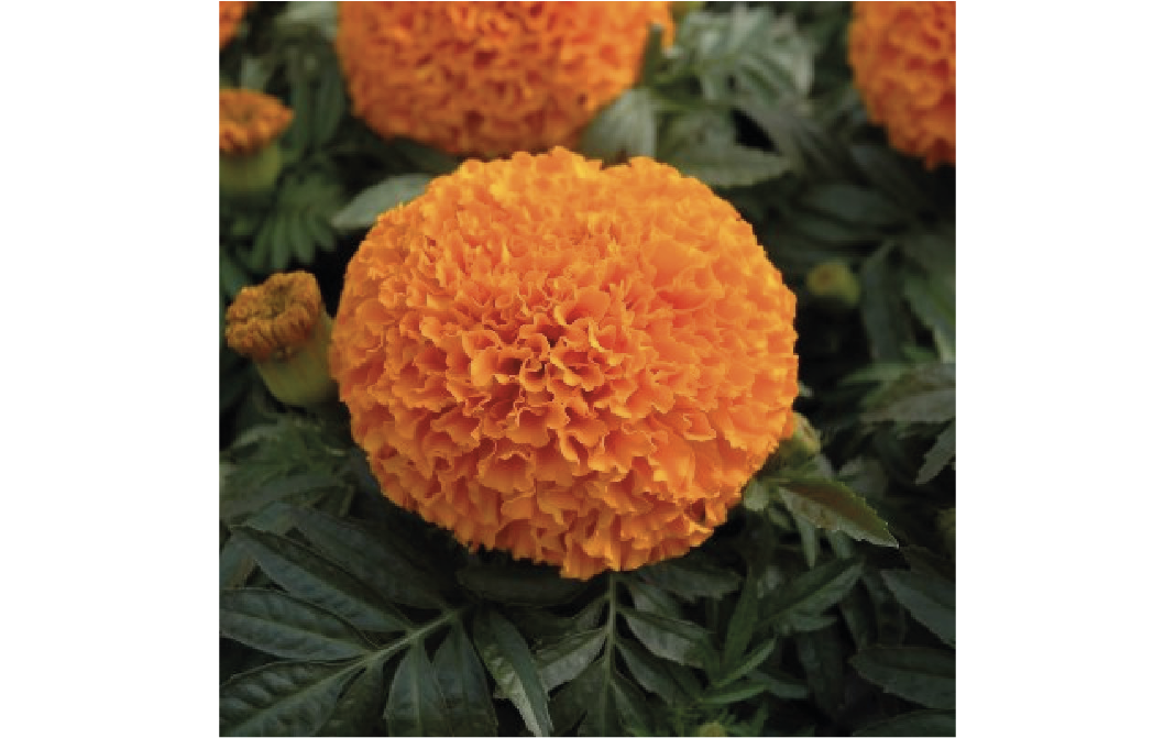 Marigold is a genus of annual or perennial, herbaceous plants in the sunflower family, Asteraceae. It is native to Egypt and parts of the Mediterranean. It is yellow-orange in color, forming small florets of petals with musky, pungent scent. They are harvested and dried for their numerous medicinal properties. It is now grown in every continent, during the warmer months of the year(May through October in the Northern Hemisphere).