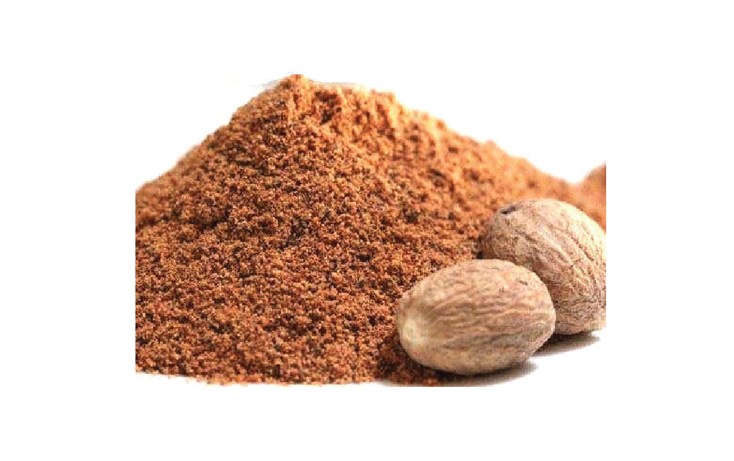 It is a dark brown powder obtained from nutmeg seed.