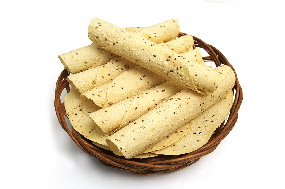 Papad are thin, crispy, round-shaped food made of dried lentils. It is either fried or roasted. They come in various sizes, shapes and textures.There are variety of papad available in market like bikaneri papad, fried papad, roasted papad, moon papad, kerala papadum,crushed papad etc.