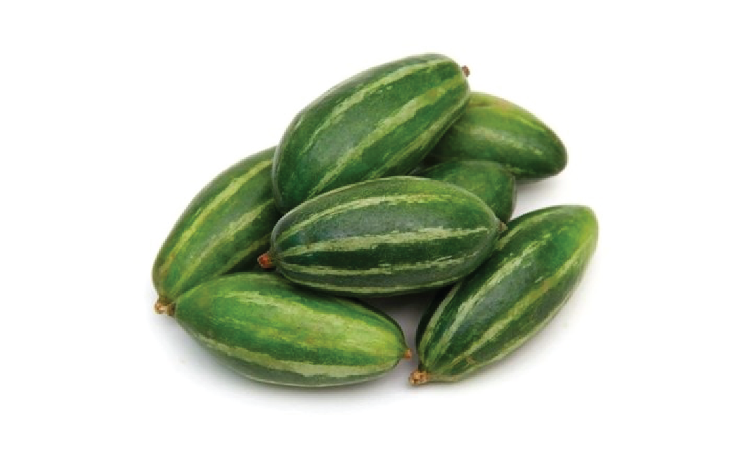 Parwal is a vine plant with heart shaped leaves belonging to the Cucurbitaceae family. It has bright green fruits with white flesh and tender seeds similar to squash and cucumber.