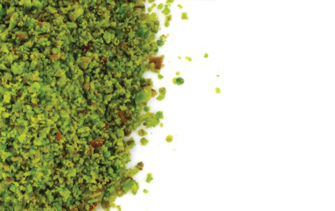Pistachios powder is a green colored powder obtained by grinding lightly roasted pistachio kernels. They can be powdered finely or coarsely as per one's choice. Coarsely ground pistachios can be used in making masala milk while finely powdered pistachios can be used as stuffing in sweet preparations.