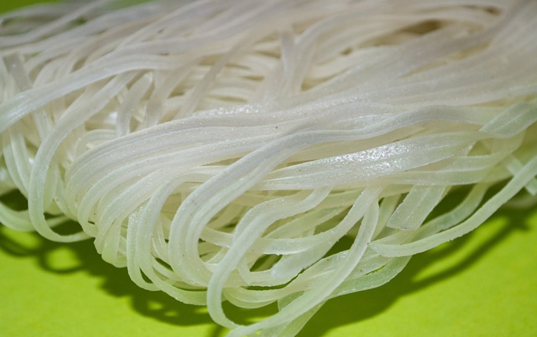 Rice stick noodles are thin long rice sticks or ribbons, off-white in color made with rice flour. They are available fresh, frozen or dried in various shapes and thickness. They have soft and chewy texture. They are popular in chinese cuisine.