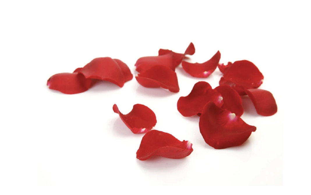 Rose petals are available in an assorment of different shades including orange, pink, white, yellow and red. The delicate petals are rounded towards the end and come to a point. They range in size and become gradually smaller towards the center of the bloom.They can be ground to form a paste. Sweet rose petal paste can be prepared by adding sugar to rose petal and grinding it in a grinder to form a smooth paste.