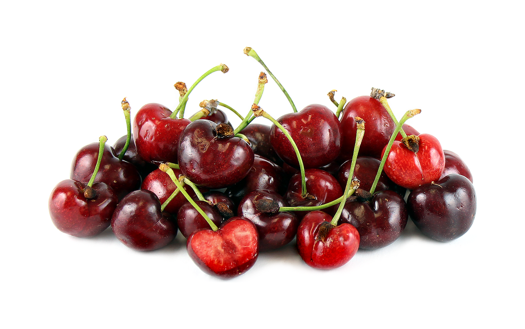 These cherries are dark red in color and have deeply pigmented flesh. They are known for having small spurs and uniform round shape.