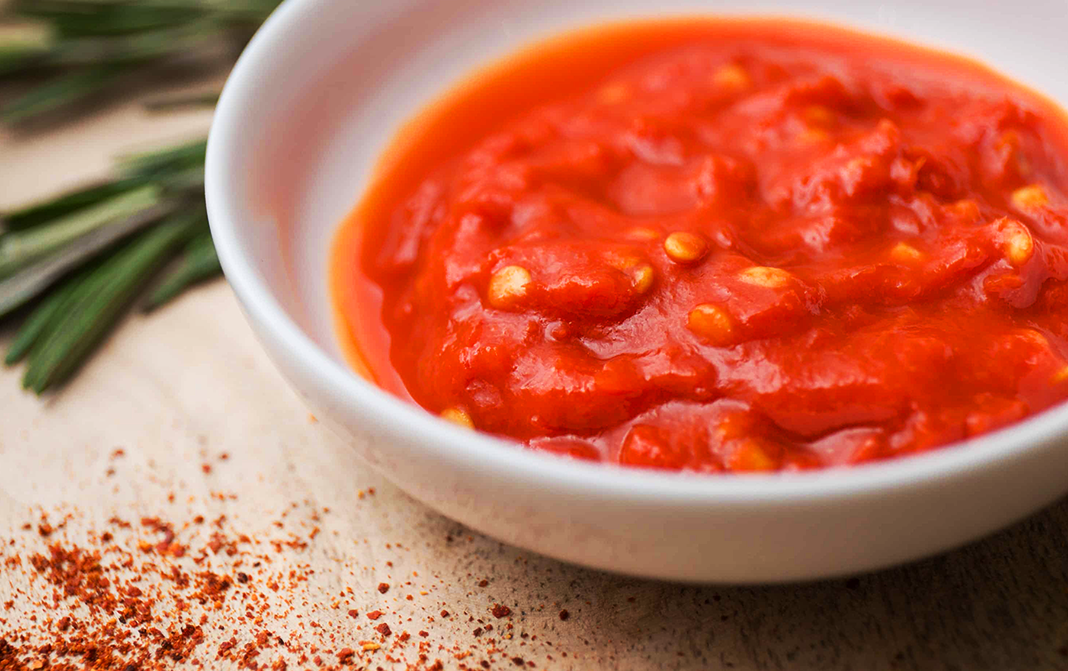 It is a chilli sauce which is obtained from the paste of sun-dried chili peppers, distilled vinegar, garlic, sugar, and salt.