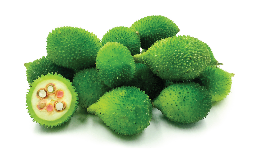 Teasel gourds have bright green to yellow skin with a thick layer of small, soft bristles. They vary from small to medium in size and oblong to oval in shape. They have a crispy and watery flesh that contains small cream-coloured or brown seeds.