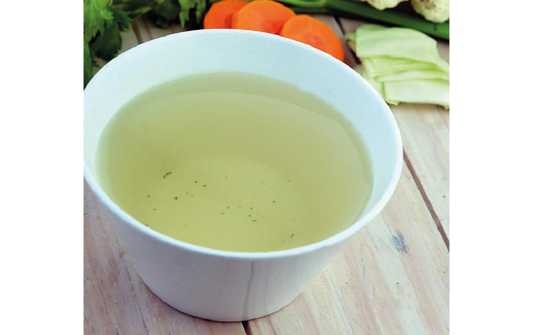 Vegetable stock is a flavoured liquid preparation made by simmering vegetables in water. The vegetables may include onion, celery, scallions, garlic, parsley, mushrooms, eggplant, bell peppers, carrots, thyme and bay leaves. The vegetables are boiled in a large saucepan, with a pinch of salt. It is reduced to a simmer and cooked for almost 2 hours. It is then sieved and can be used in any recipes like risotto, soups or gravies. For vegetarians, vegetable stock is a good substitute for chicken stock.