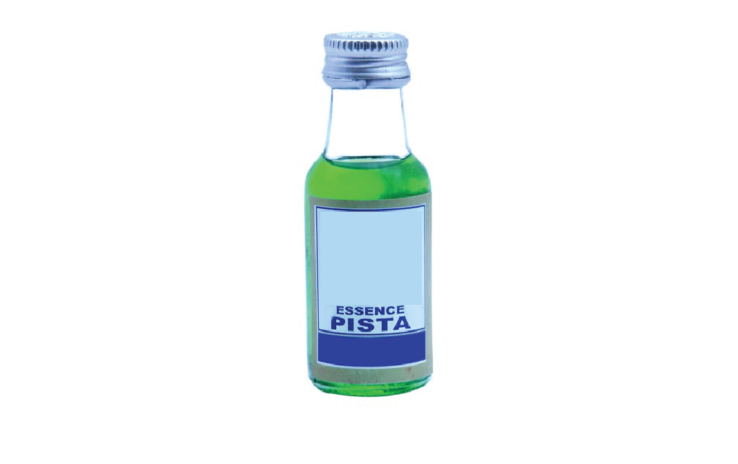 Pista essence is the concentrated flavour extracted from pistachio nut. It can be obtained naturally by putting pista nuts into an alcohol solution or synthesized artificially using chemical compounds. Pista essence has a dark caramel in color with a thick consistency. It can be used to flavour baked goods and Indian sweets.