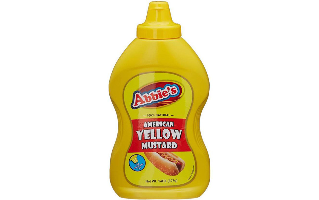 Abbies - American yellow mustard is a very good product. You don't ever have problems getting too much because you have to squeeze too hard causing a mustard eruption and the hole is just right for a perfect line of mustard down your hot dog or sanwiches.