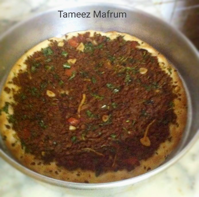Arabic Tameez Bread has originated from Afghan and it is called as Nan-I-Afghani نان افغانی in Afghanistan. But Tameez Bread is popularly known and eaten in Saudi Arabia. The main ingredients of Tameez Bread are flour, yeast, sugar and water. Caraway seeds are often sprinkled on the top of the Tameez Bread. Arabic Tameez Bread is usually made in cylindrical clay oven or Tandoor. However, In this recipe, I cooked the Tameez Bread in the oven. The special about this recipe is that, In this recipe, Tameez Bread is cooked with mince and decorated with Brinjal, Tomato and Capsicum slices.