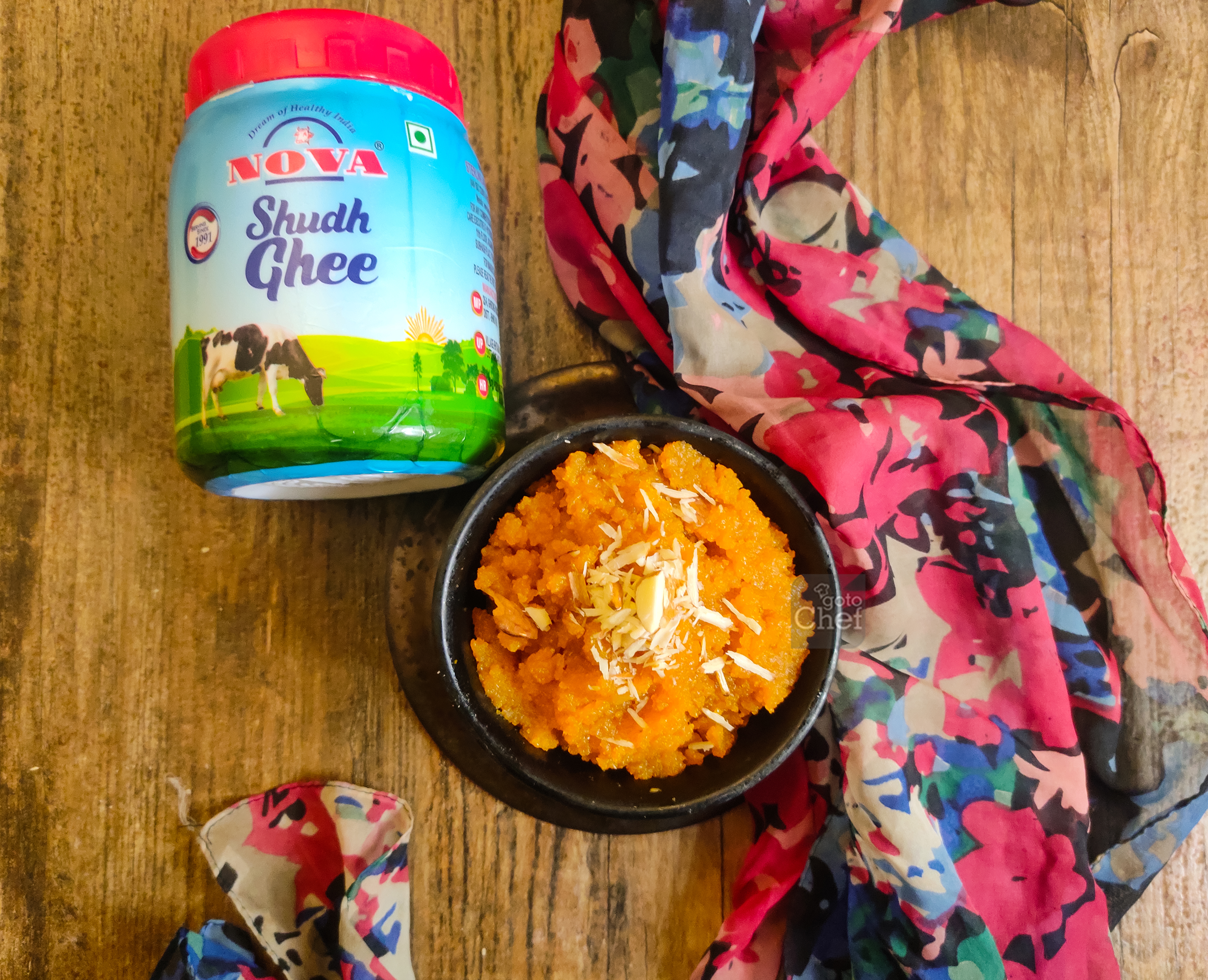 In anticipation of a special evening? Rustle up this elegantly divine looking moong dal halwa infused with the warmth of Nova's shudh desi ghee. So immerse your kitchen with flavours of moong dal halwa.