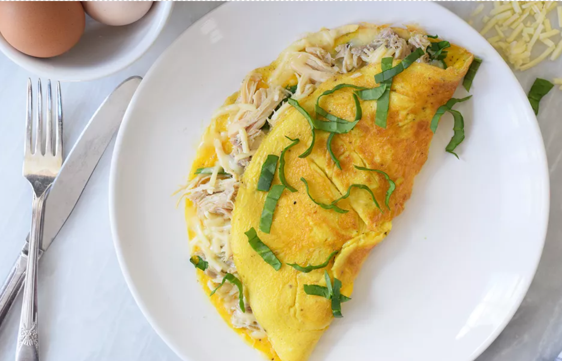 Filling and delicious, this chicken omelette can feel more like a lunch than a breakfast! It’s chock-full of shredded chicken, cheese, chopped spinach and a little Naagin Sauce, so perfect Goldilocks would be proud. This chicken omelette is super easy to whip together and tastes like it took all day!