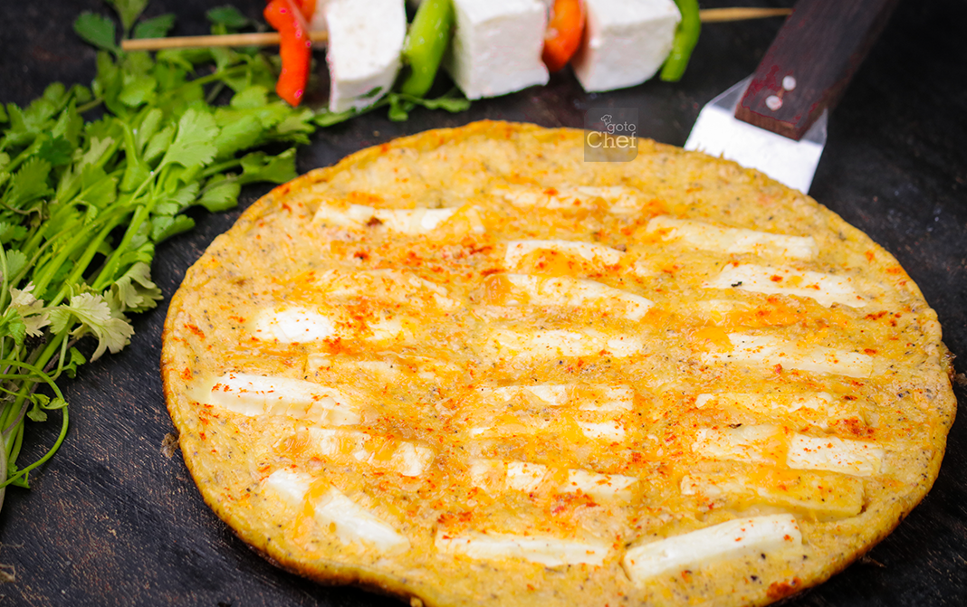 GoToChef RecipeA unique fusion of pizza and omelet, topped with paneer red peppers an...