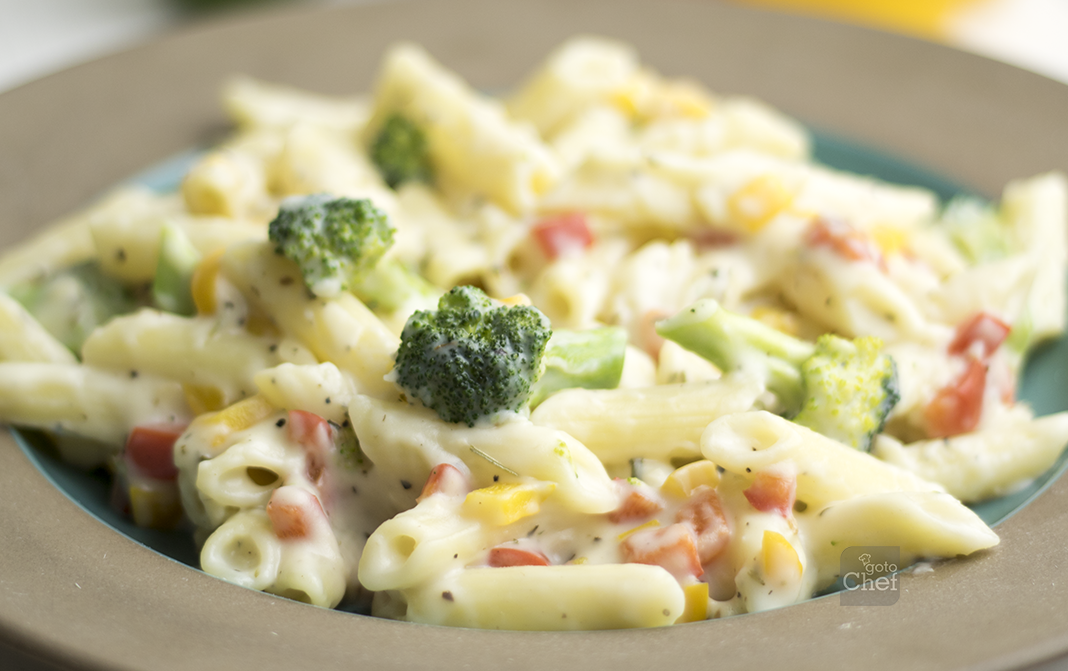 This white sauce pasta recipe uses loads of colorful veggies. The cheesy white cream sauce for pasta makes it the most favorite among kids recipes. Infact, this italian pasta recipe is a quick and easy recipe that you can teach your children too, anf they'll be able to make it in a jiffy.